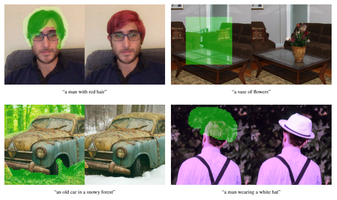 저렇게 'a corgi wearing a red bowtie and purple party hat" 이라는 문장을 입력하면 코기가 빨간 리본과 보라색 파티모자를 쓰고 있는 사진이 생성된다. GLIDE는 특정 영역에 text condition을 주어 원하는대로 합성이 가능한데, 이러한 기술을 "inpainting"이라고 논문에서 언급하고 있다.