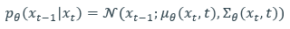 Reverse process는 forward process의 최종 결과인(완전한 노이즈 상태) x_t 에서 다시 원본 상태인 x_0 로 복원하는 과정이다.