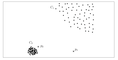 따라서 anomaly score 는 p1보다 p2가 더 높아 p2의 점이 이상치일 가능성이 더 크다.