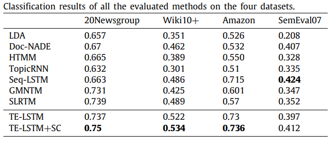 - Topic similarity constraint가 있는 모델, 없는 모델 둘다 분류 문제에 대해 다른 모델보다 향상된 성능을 달성함