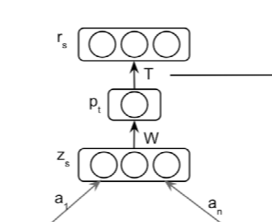 이를 latent vector $p_t$로 압축했다가, $r_s$로 다시 복원 한다.($p_t=softmax(w\cdot z + b)$) 압축된 $p_t$에서 $r_s$로 복원할 때 bias 값 없이 다음과 같이 계산된다.