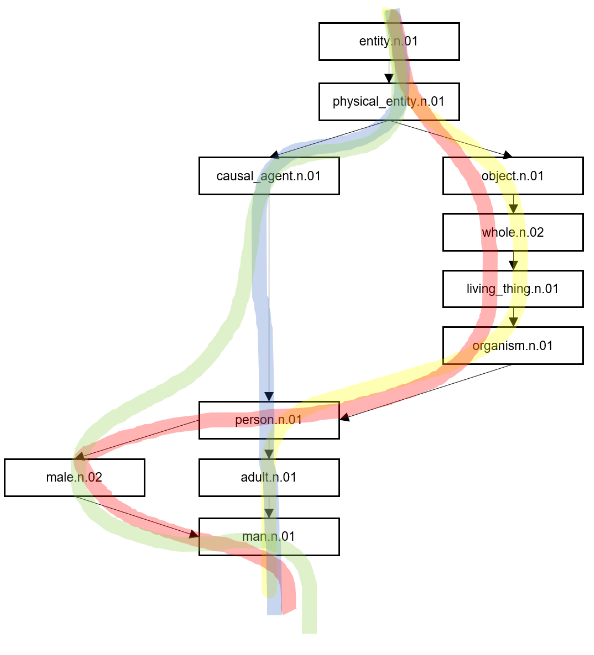 Ranking model에서는 토픽 임베딩 벡터 $T$와 단어 임베딩 벡터 $w$사이의 유사도를 기반으로 단어를 정렬해놓고 시작한다. 가령 $T_1$과 유사도가 높은 단어들의 집합이 다음과 같이 ['Fruit', 'Apple', 'Pitch',....,] 일 때, 이를 word net을 활용하여 각 단어 사이의 관계를 파악한다. (예를 들어 상위어("사과"는 "과일"에 속하니까 "과일"이 상위어), 하위어 등) 그 후 가장 상위에 있는 단어를 토픽으로 설정한다.