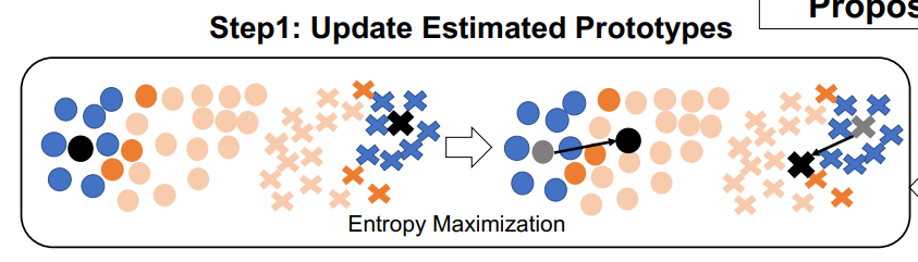 3. 2의 결과로 클래스를 대표하는 W1, W2는 도메인에 invariant 한 position에 매핑이 되는데, 이때 다시 entropy를 최소화 한다.(아래 그림처럼)