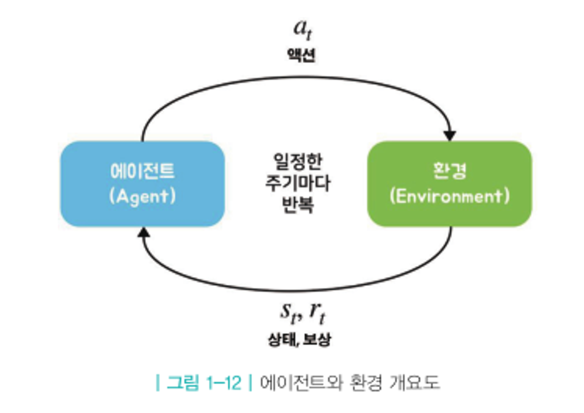 - 에이전트: 강화 학습의 주인공이자 주체, 학습하는 대상