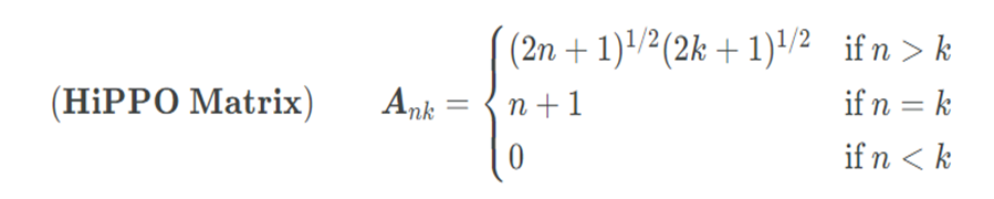 DeepSSM에서 볼 수 있었던 문제는 파라미터 A, B, C를 random하게 초기화 해놓고 모델링을 하다보니, 현재 처리하고 있는 token보다 더욱 이전에 들어왔던 token을 까먹는 것이었습니다.(Long term dependency) 따라서 과거의 모든 시퀀스를 잘 기억할 수 있는 matrix를 찾아서 파라미터 A, B, C를 학습하는 것이 HiPPO의 목적이었습니다.