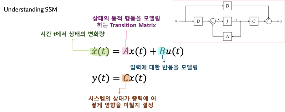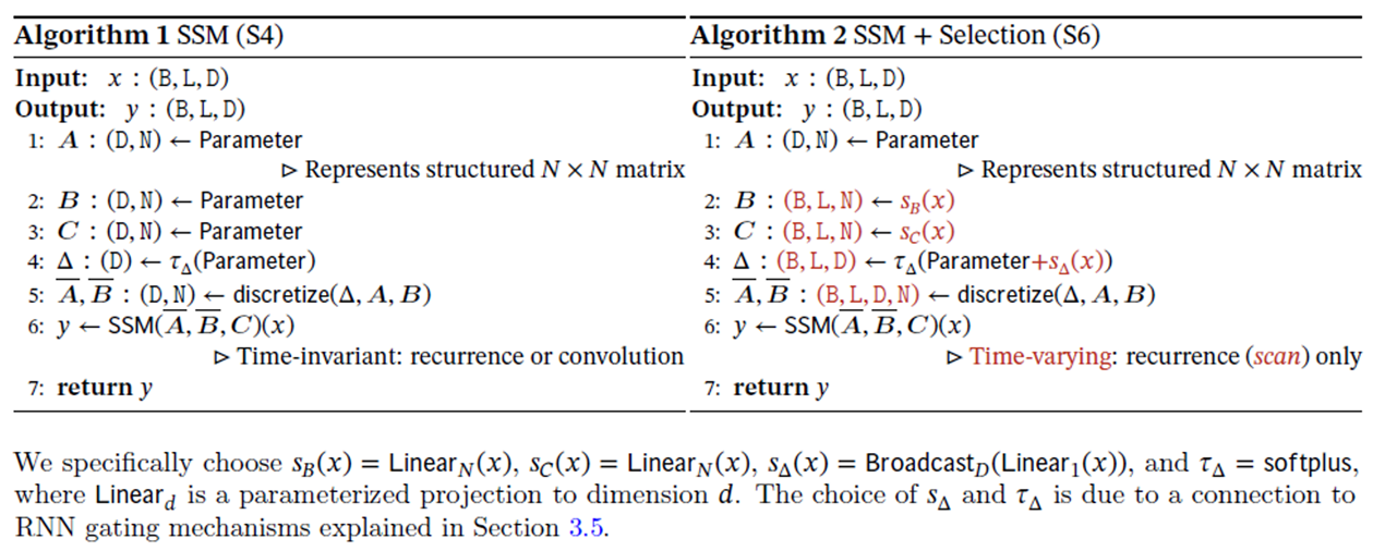 이 모든 과정은 위 Selective state space model 그림에 색을 달리하여 표현되어 있습니다.