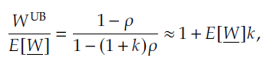즉, 지연 효과를 고려할 때 일반 M/M/1 system의 기대 workload 보다 더 M/M(f)/1이 더 상승하며, $E[ \underline{W}]$가 $1/(1-\rho)$에 따라 상승하는 점을 감안했을 때, 지연 효과를 고려하면 $1/(1-\rho)^2$에 따라 증가할 것이라는 걸 알 수 있습니다.