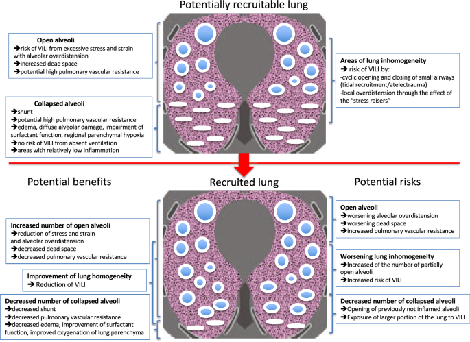 경증 ARDS 환자의 경우, 폐 조직 손상이 비교적 적기 때문에 이미 대부분의 폐포가 열려 있거나, 이미 기능을 유지하고 있다. 따라서, 기계적 환기나 다른 치료 방법을 통해 추가로 열 수 있는 폐포의 양이 적다. 반면에 중등도 및 중증 ARDS 환자에서는 폐 손상이 심하고 많은 폐포가 붕괴되어 있다. 따라서, 기계적 환기, 특히 고양압(PEEP, Positive End-Expiratory Pressure)과 같은 전략을 통해 더 많은 폐포를 다시 열 수 있는 잠재력이 높다.