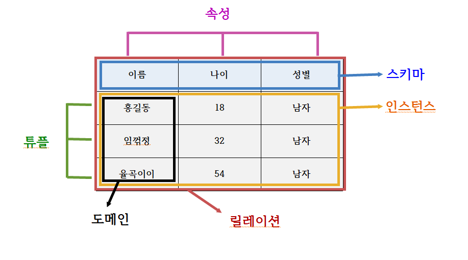 [2] (DB/데이터베이스) 릴레이션, 스키마, 인스턴스, 튜플, 속성, 도메인 개념 설명