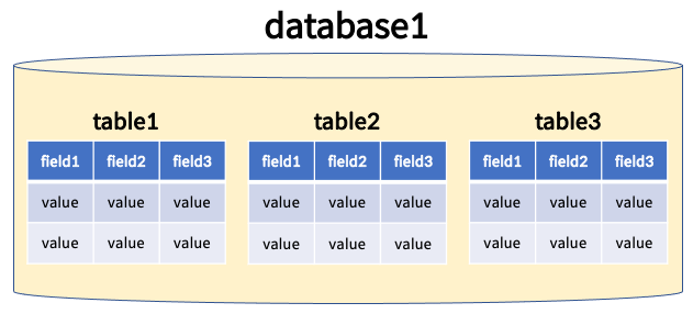 데이터베이스 안에는 여러 개의 데이터베이스 이름이 존재한다.