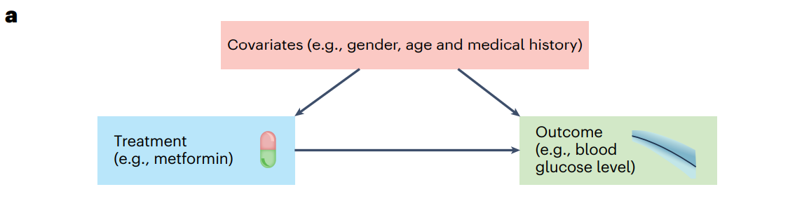 또한 치료 효과를 추정하기 위해서는 근본적인 인과 관계를 모델링하여 치료, 결과 및 환자 특성 간의 의존성 구조를 설명해야한다.