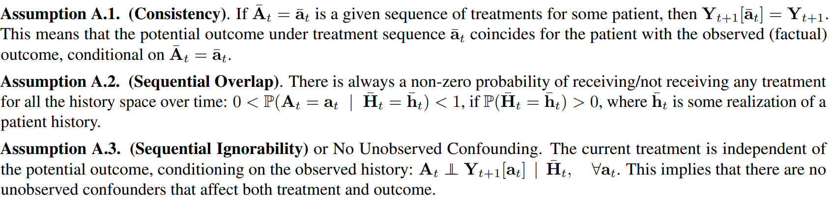 (1) consistency, (2) sequential ignorability, (3) sequential overlap -> 해당 내용은 appendix A에 있음