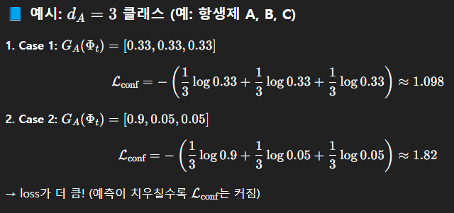 이 형태는 entropy 형태로 이를 minimize 하는 것은 A를 얼마나 잘 맞추는가를 의미함. 하지만 여기서는 잘 못맞추도록 하는 것이 목표