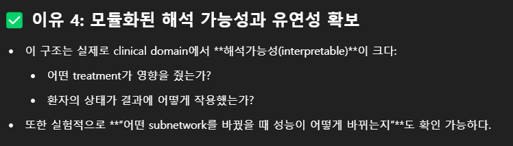 통계 모델이나 머신러닝의 경우 시간이 지남에 따라 변하는 교란 요인을 통제하지 못해 종종 예측에 일반화 오류가 있거나 편향이 존재한다. 이러한 지점을 공략하기 위해 최근에는 recurrent marginal structural networks (RMSNs), counterfactual recurrent network (CRN), G-Net 같은 방법론이 개발되었는데, 이러한 방법론의 근간 자체가 LSTM이다 보니, 복잡하고 긴 종속성을 해결하지 못한다는 문제를 지적한다.