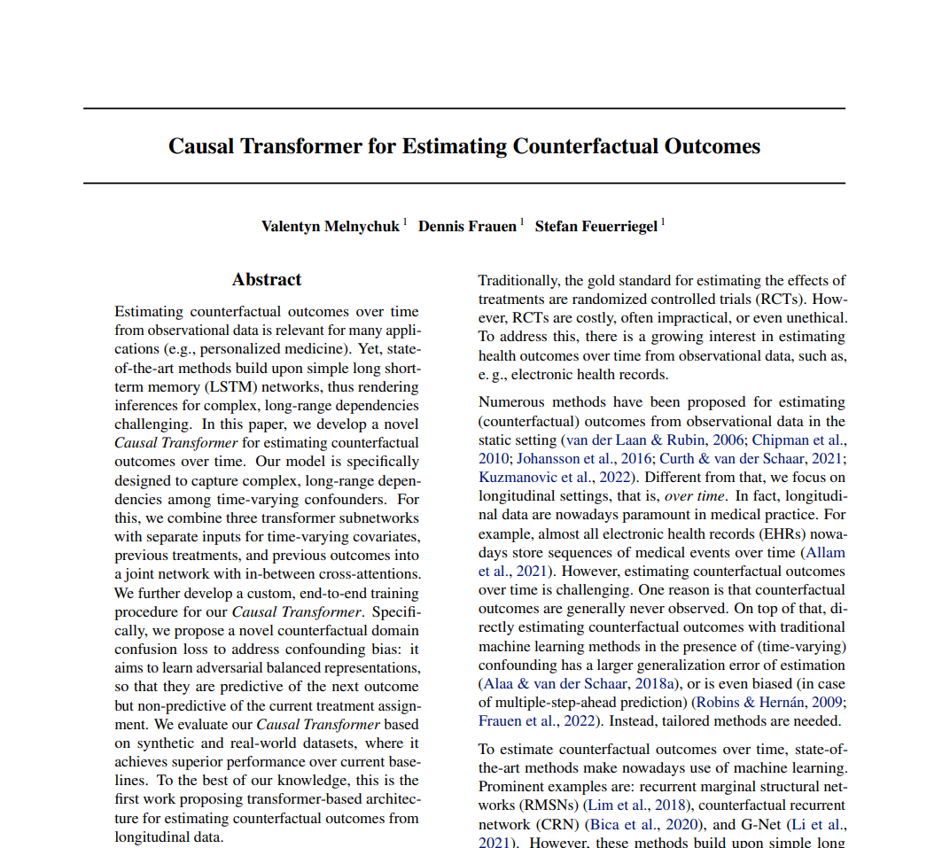 따라서 해당 연구는 Transformer를 기본으로 한 반사실적 결과 추정 모델인 Causal Transformer를 제안한다.