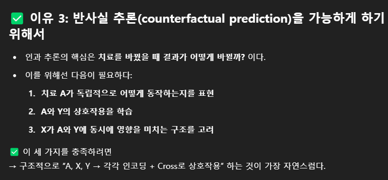 representation에서 A를 없애고, treatment를 독립적으로 입력함으로써, Y예측에 confounding 정보로부터 독립적으로 들어와야 하게 만든 것임
