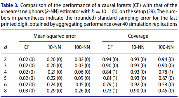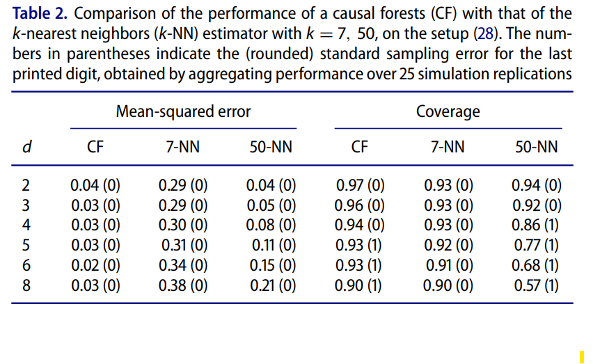 실험의 의도는 단순한 K-NN 방식과 비교했을 때 causal forest가 신뢰 구간을 포함해 더 정확하고 견고한 추정이 가능한가를 알아보는 것이다.