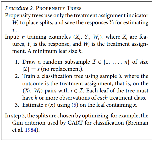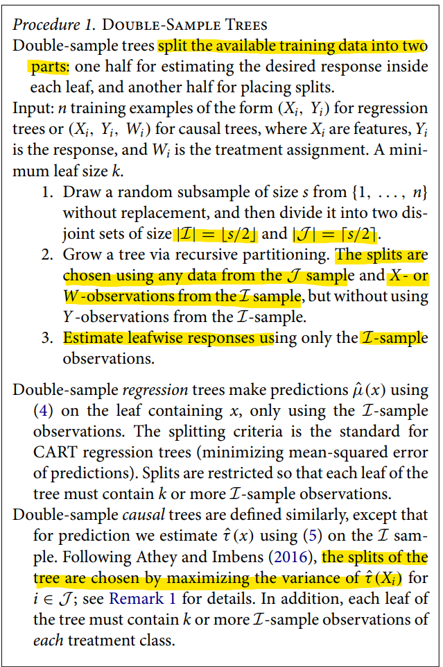 Honesty 조건에서 Standard case (split을 정할 때 Y를 사용하지 않음) 또는 Double-sample case (Procedure 1)를 언급했었는데, 치료 변수를 이용한 split이 가능하다는 것이 추가된다. (Definition 2b)